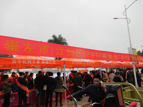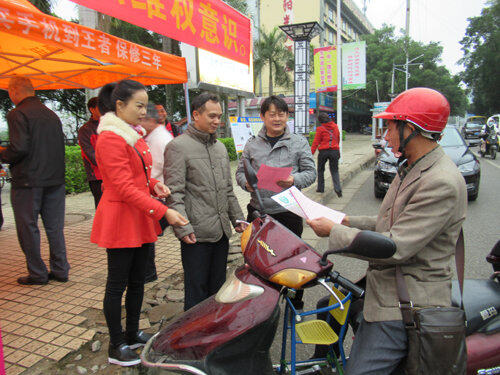 3月15日,崇左市农机局联合工商、质监等有关部门在火车站广场开展现场咨询和服务活动,宣传农机消费维权相关法律法规。