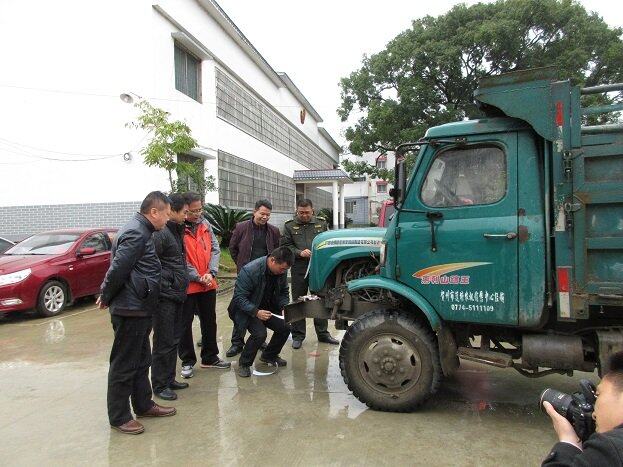 1月12日上午,贺州市农机局黄礼锋局长、翟其良副局长、康乐彪副局长和监理所梁金丰所长一行冒着严寒、大雨深入富川县城北镇检查指导农机年检审工作,检查组首先听取了富川县今年农机年检审工作开展情况,查阅了相关工作台账及档案资料,查看了拖拉机检测过程,现场指导了反光标识的粘贴、车身喷漆、操作性能检测等各项工作,并与农机手亲切交流,倾听诉求、征求意见,向其宣传农机安全生产工作知识,提高其安全生产自觉意识。检查组对监理人员不畏艰苦和严寒,开展送检下乡的便民服务给予了充分肯定,并要求监理人员要严格按照国家、自治区有关农机年检审工作的要求和标准抓实、抓细每一项工作,做到检审规定、程序、收费项目、收费标准“四公开”, 杜绝乱收费、搭车收费、不见车年审现象;加强拖拉机操作性能检测,对存在安全隐患的拖拉机要求当即整改,严禁检验不合格的拖拉机带病作业,从源头消除事故隐患;要一切以方便机手、服务群众为出发点,进一步提高工作效率,确保2017年度检审任务顺利完成。